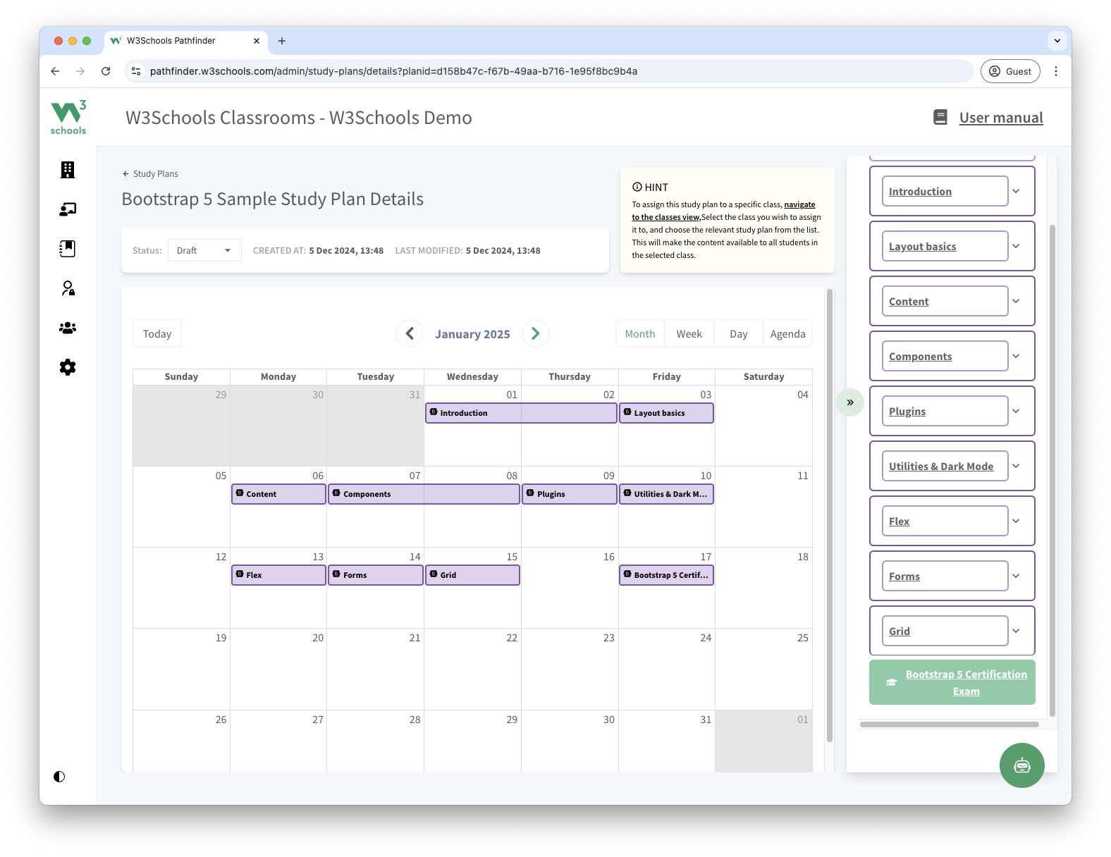 Save time with pre-built teacher materials and study plans. Easily organize your class with a timeline from the introduction of Bootstrap 5 to the final exam.