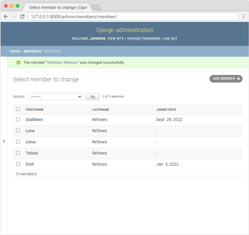 Now we are able to create, update, and delete members in our database, and we start by giving them all a date for when they became members.