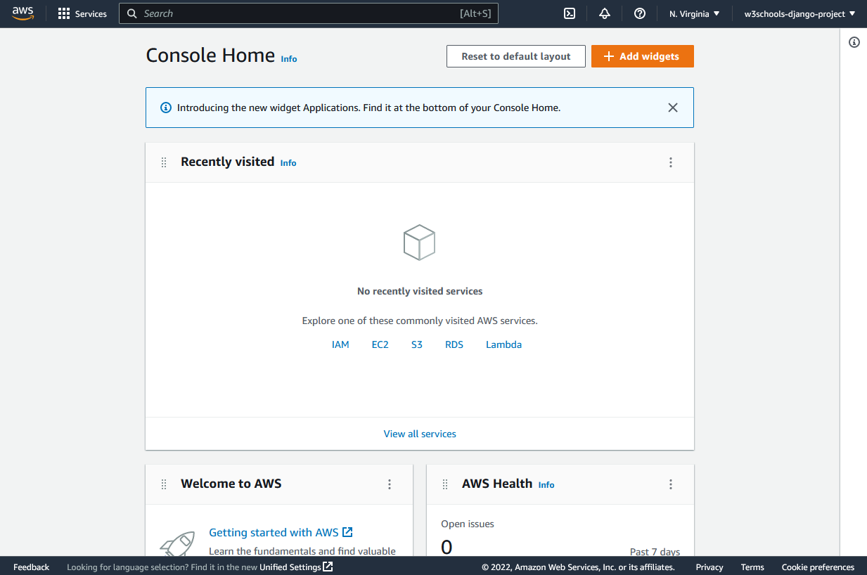 If this is your first time you sign into your AWS account, you will be directed to the AWS Console Home page: