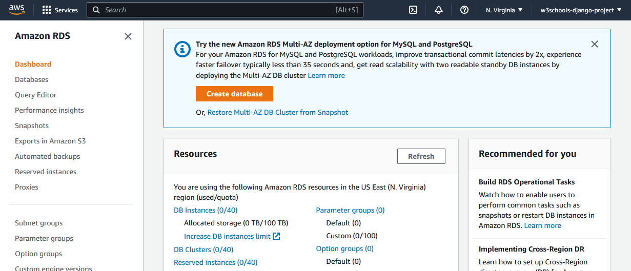 Once you have an AWS account, you can start creating a database.