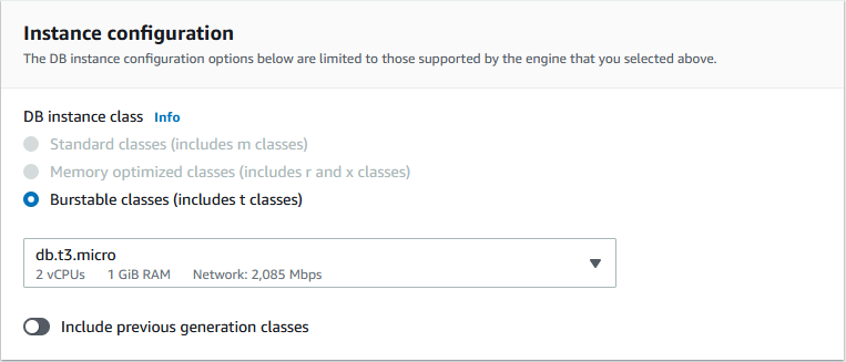 Keep the default instance configuration: