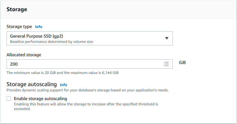 Check off the storage autoscaling: