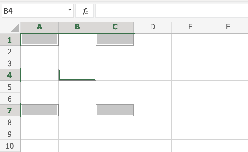 Lets try an example: Select the cells A1, A7, C1, C7 and B4.