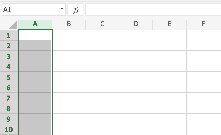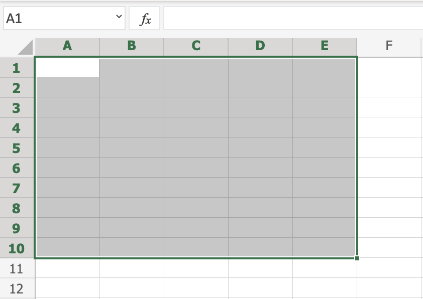 Note: You can also select the entire spreadsheet by pressing Ctrl+A for Windows, or Cmd+A for MacOS.