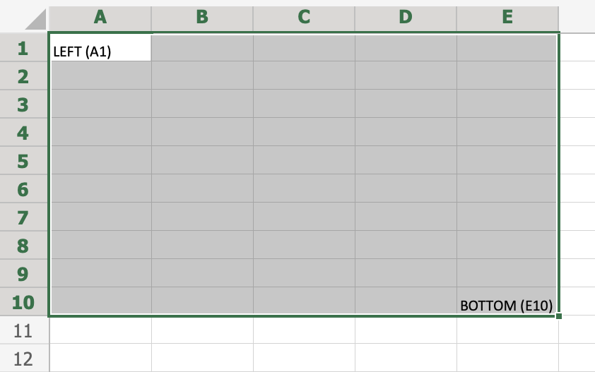Press and hold A1 with the left mouse button. Move to the mouse pointer to mark the selection range. The grey area helps us to see the covered range.