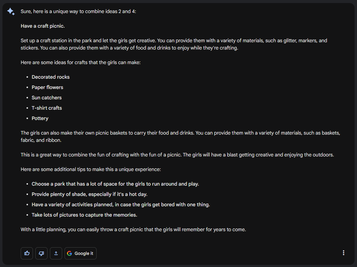 That was an example of how you can start with a basic idea and, with the help of Bard, transform it into something unique.