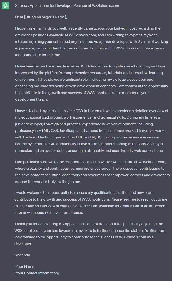 Now, you can continue to refine this draft and make it your own. But ChatGPT gave us a good starting point.