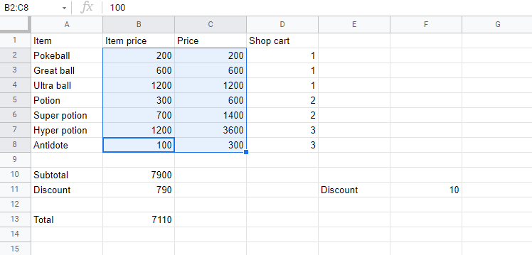 In the example we have cells that represent prices, which can be formatted as Currency.