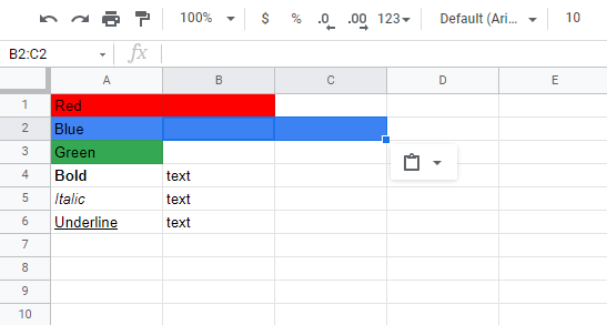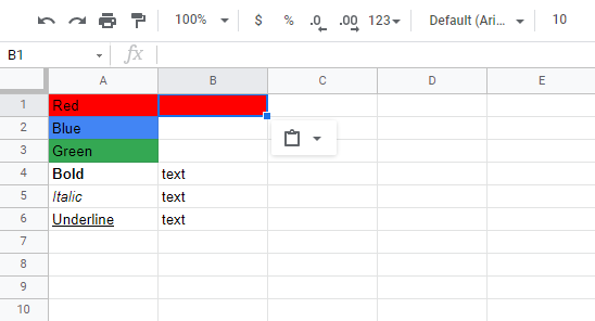 Let's try some examples and copy formats with Colors and font Characteristics, such as bold, italic and underline: