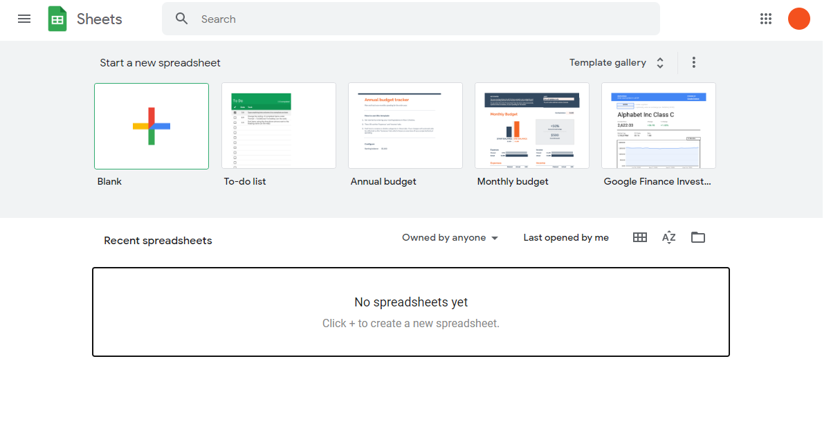 Once you have successfully logged in, you will land in Google Sheets' start Page. Click on the Blank button to get started with a new workbook.