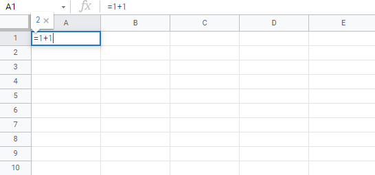 • Second, type =1+1.