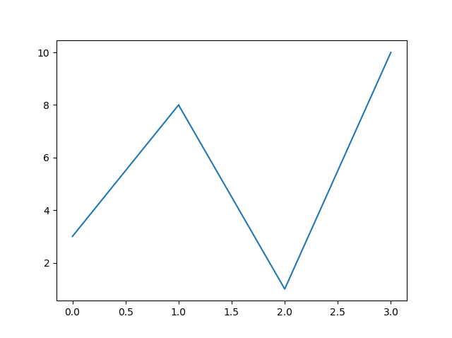 #Three lines to make our compiler able to draw: import sys import matplotlib matplotlib.use('Agg') import matplotlib.pyplot as plt import numpy as np ypoints = np.array([3, 8, 1, 10]) plt.plot(ypoints, marker = ',') plt.show() #Two lines to make our compiler able to draw: plt.savefig(sys.stdout.buffer) sys.stdout.flush()