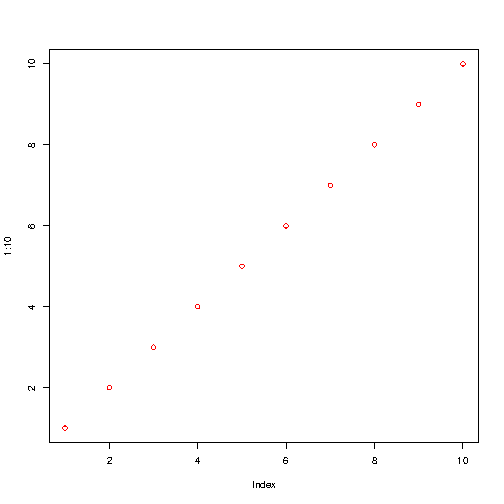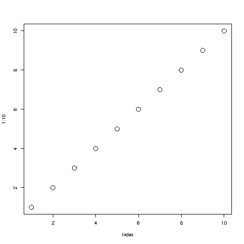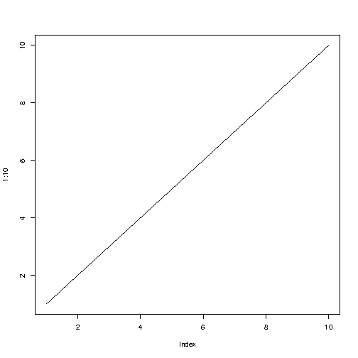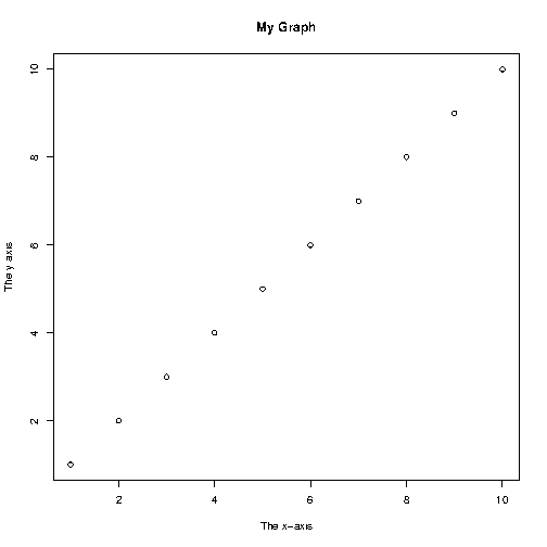 plot(1:10, main="My Graph", xlab="The x-axis", ylab="The y axis")